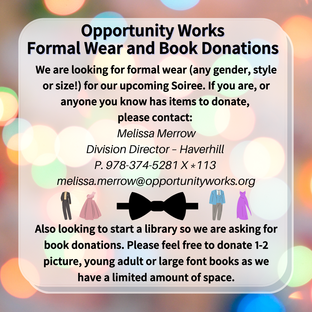 We are looking for formal wear (any gender, style or size!) for our upcoming Soiree. If you are, or anyone you know has items to donate, please contact: