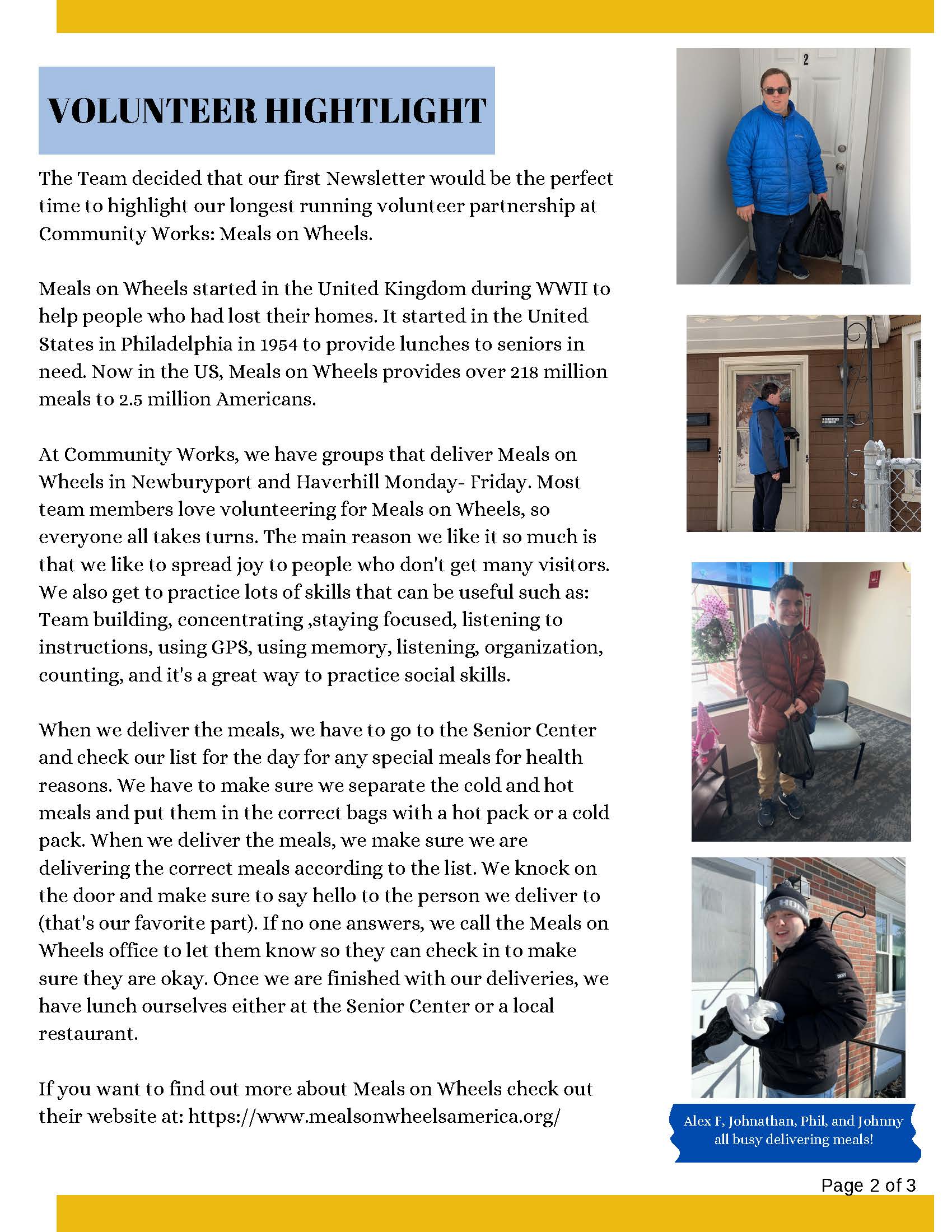 At Community Works, we have groups that deliver Meals on Wheels in Newburyport and Haverhill Monday- Friday. Most