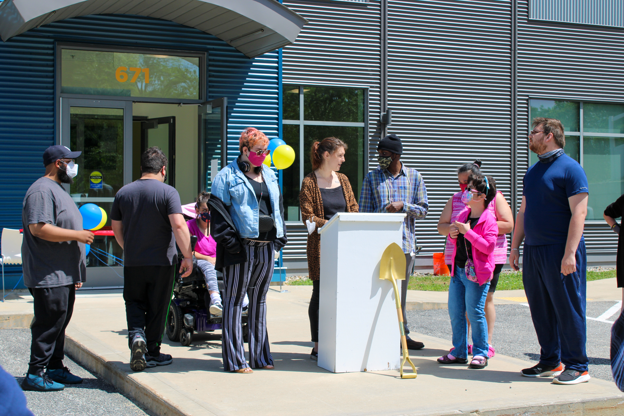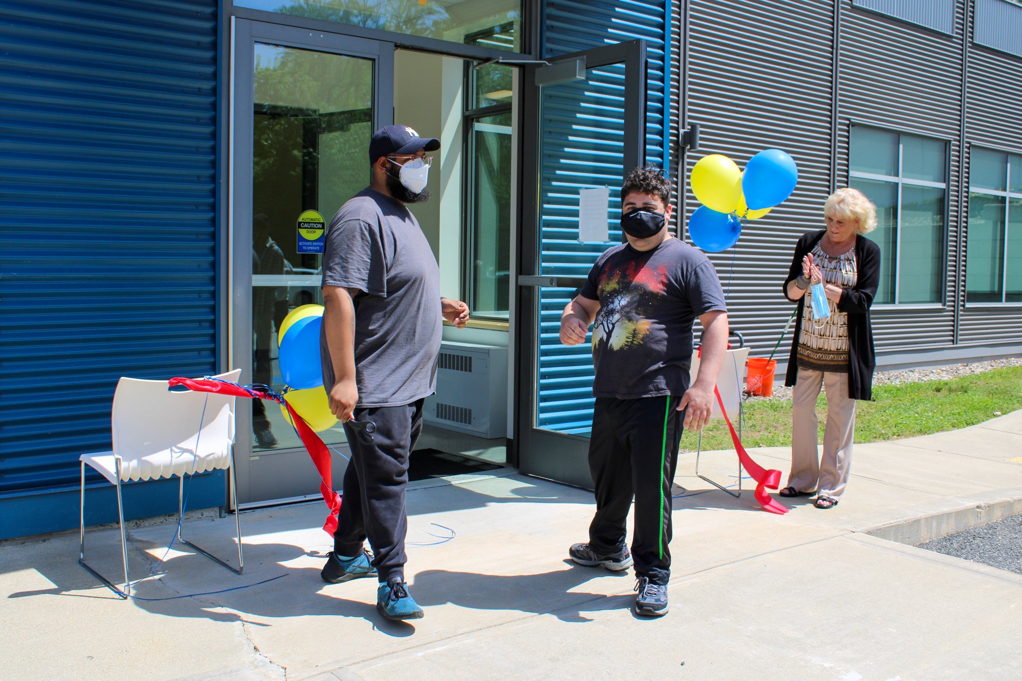 We hosted a small ribbon cutting ceremony on Wednesday 5/25 at 11am for the folks supported.  One lucky person was selected to cut the ribbon…congrats Robert K!!  The ribbon cutting was an internal event for the people supported and staff, however we will be hosting an open house to tour the downstairs space for family and friends.