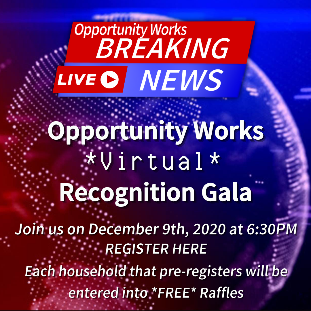 You are invited to our first ever (and also 44th Annual) Virtual Recognition Gala on Wednesday December 9th, 2020 at 6:30 PM. Use the form below to receive updates leading to the event, and Zoom information. Join us for a fun night with our OW news anchors, honoring local community members, staff, and the folks we support.